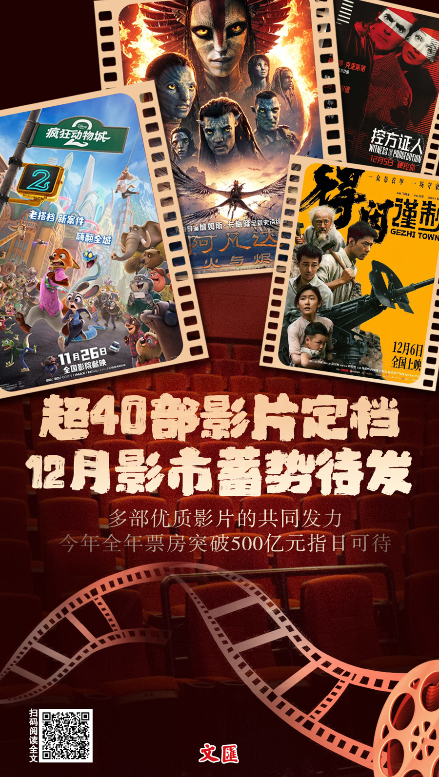 12月电影市场打破传统档期模式,超40部影片梯次定档,开启票房冲刺。截至12月3日19时,预售票房突破9500万元,猫眼想看人数超过23.6万。在《阿凡达:火与烬》等重磅新片及《疯狂动物城2》长尾效应带动下,全年突破500亿元指日可待。战争题材方面,《得闲谨制》与修复版《赛德克·巴莱》呈现家国情怀;科幻巨制《阿凡达:火与烬》领衔多元类型片,配合宁浩、饶晓志等导演新作及经典重映,形成全月持续供给。市场以丰富片单展现活力,行业正期待跨年档再创佳绩。